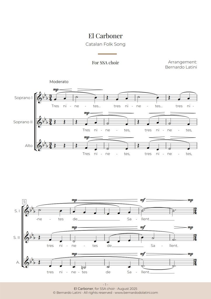 “El Carboner”. New release. by Bernardo Latini Publications Arrangements, Bernardo Latini, carboner, Catalonia, Choral Music, Composer Catalan folk tune. Arrangement: Bernardo Latini. For SSA choir. El Carboner